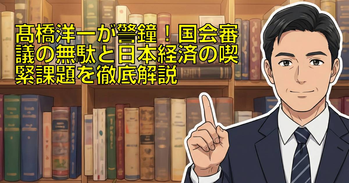 YouTubeチャンネル「髙橋洋一チャンネル」の動画「1468回 中道小川、国会でWBC観戦を質問 実にくだらない」では、髙橋洋一氏が国会での瑣末な質問に対し、その「くだらなさ」を一刀両断しています。多忙なビジネスパーソンの皆様にとって、国会審議の効率性や、本当に議論すべき重要課題が見えにくいと感じることもあるでしょう。この記事では、髙橋氏の指摘の真意を深掘りし、現在の日本が直面する経済・財政の喫緊課題と、あるべき国会審議の姿について、最新のデータに基づき約5分で核心を理解できるよう解説します。