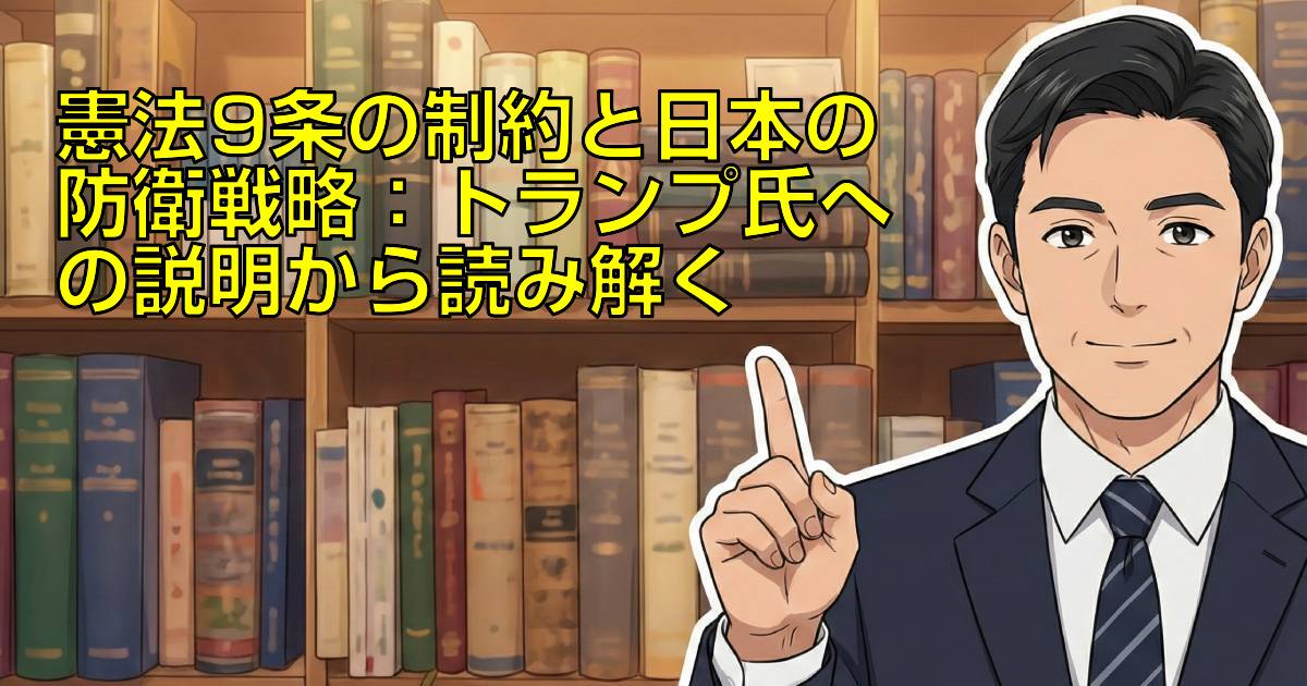 YouTubeチャンネル「髙橋洋一チャンネル」の動画「1474回 トランプに憲法9条制約を説明 世界一変えにくいんです」は、日本国憲法第9条が日本の外交・安全保障政策、特に国際的な軍事協力においていかに大きな制約となっているか、そしてその改正がいかに困難であるかを深く考察しています。多忙なビジネスパーソンの皆様が、この複雑なテーマの核心を効率よく理解できるよう、最新の動向を交えながら解説します。